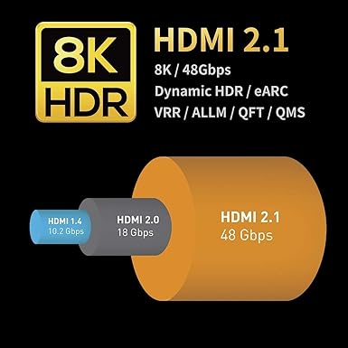 Hdmi 2.1, 48Gbps Bandwith and DSC 1.2 Compression, 8K60Hz, 4K120Hz, 4K60Hz, 1080p240Hz
