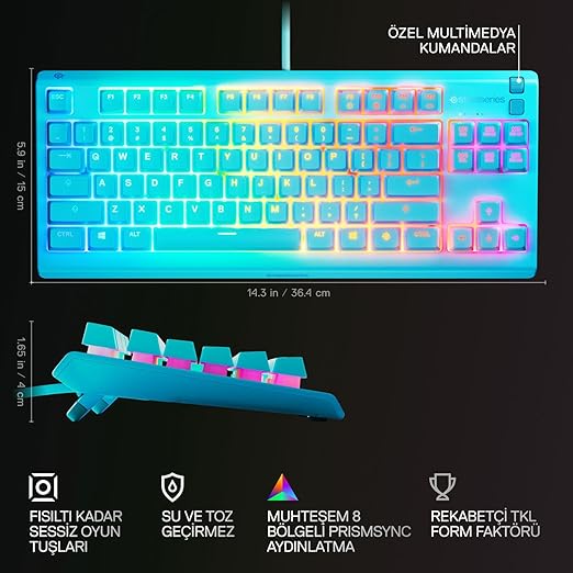 SteelSeries Apex 3 TKL RGB Suya ve Toza Dayanıklı Türkçe Gaming Klavye – Mavi