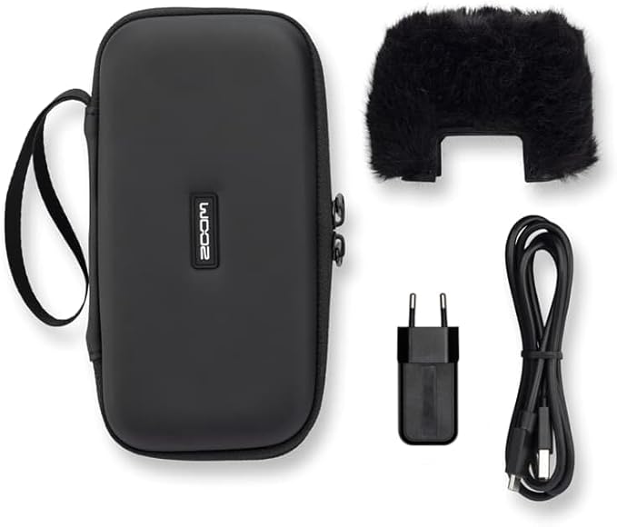 Komple aksesuar paketi – H2essential kayıt cihazı için rüzgar koruması, çanta, güç kaynağı ve USB-C kablosu içerir