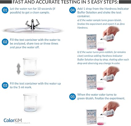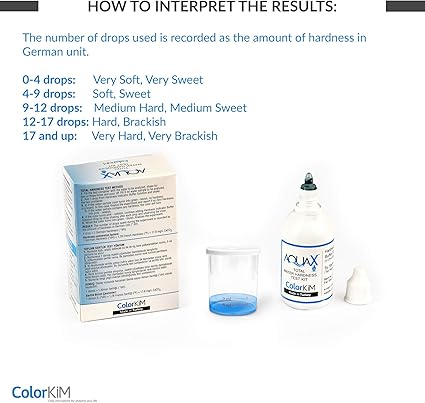 – AQUAX Yerli Üretim, 50 mL Toplam Su Sertlik Test Kiti | Basitçe Damlat Gör yöntemi | Kalibrasyon gerekmez!