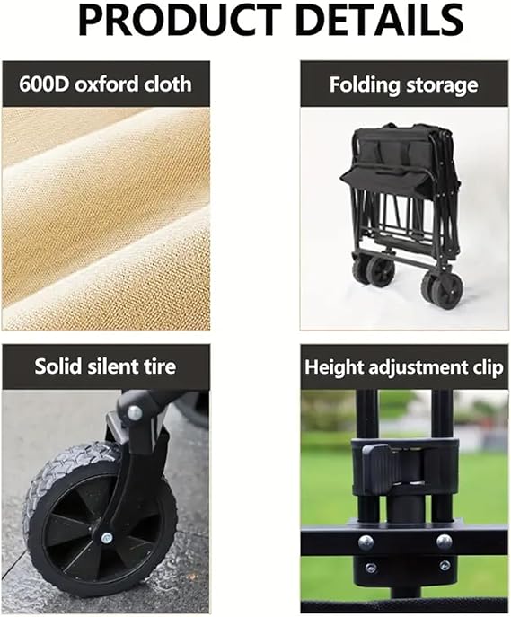 Araba, 350 lb Ağır Hizmet Tipi Açık Hava Vagonu Plaj Arabası, Ayarlanabilir Saplı, Büyük Kapasiteli Taşınabilir Kamp Vagonu Dış Mekan, Bahçe, Alışveriş, Plaj için