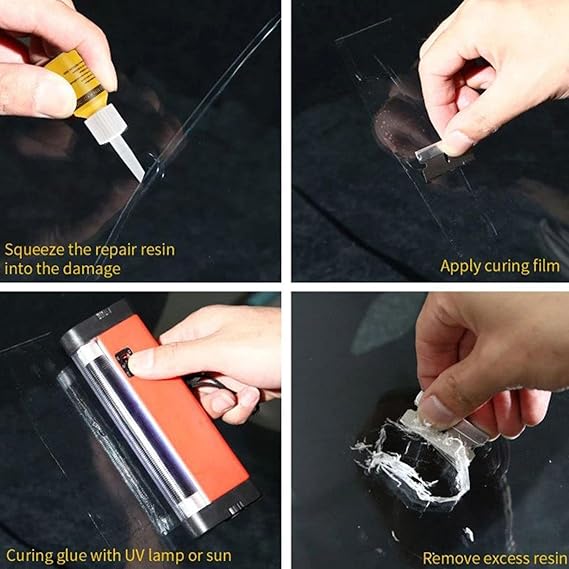 ⇝[Kullanımı Kolay] Ön Cam Çatlak Onarım Kitinin kullanımı kolaydır ve inşaattan önce camı temizlemek ve kurutmak için gereklidir, reçineyi çatlaklara sıkıştırması gerekir.