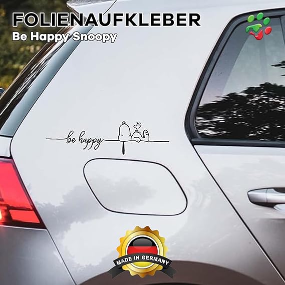 araba çıkartması, Snoopy Be Happy – 2 parça – 40 cm x 10 cm – tüm yüzeyler için çıkartma – pencere, yan ayna, arka cam, kaput, araç – kılavuz (Türkçe olmayabilir) ile