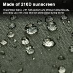 Seyahat sırasında size rüzgar ve yağmur koruması sağlayan, yüksek yoğunluklu ve güçlü hidrofobikliğe sahip 210D güneş koruyucu ve su geçirmez kumaştan yapılmıştır.