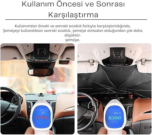 Araç içindeki sıcaklığı azaltmak ve güneş ışınlarının zararlı etkilerinden korunmak için araba güneş koruyucu şemsiyesi mükemmel bir çözümdür. Bu şemsiye, arabanızın ön camına kolayca takılabilir ve yüksek kaliteli malzemelerden yapılmıştır.