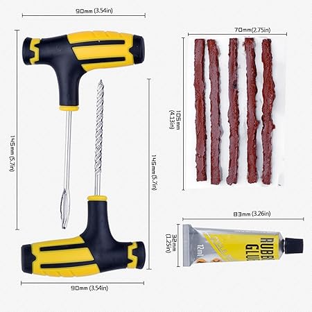 Geniş Kullanım Alanları: Bu araba lastiği tamir seti, ister araba, ister kamyon, motosiklet, çim biçme makinesi, traktör veya römork olsun, tüm iç lastiksiz lastikler için çalışır. Gerekli tüm araçlar ve talimatlarla birlikte geldiğinden, onu kolayca ve hızlı bir şekilde kullanabilirsiniz.