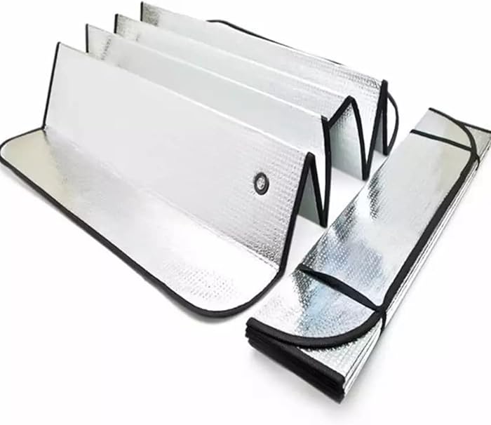 Ön cam güneşliği metalize reflektörlü aluminyum yüzeyiyle güneş ışığını %99’a kadar bloke ederek daha konforlu bir yolculuk olanağı sunar. 2 adet vantus ile birlikte paketlenmektedir.