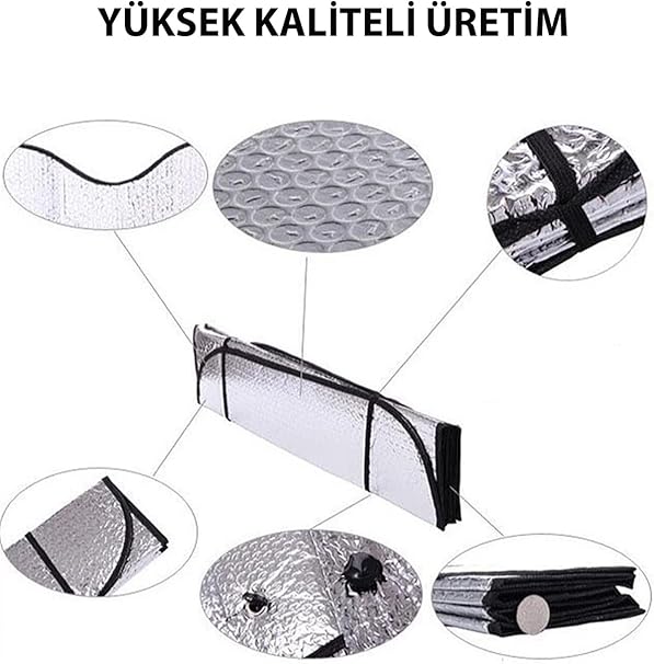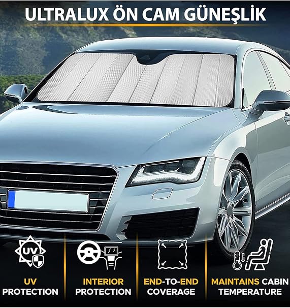 Ultralüx kaliteli Araba Ön Cam Güneşliği güneş ışınlarını geri yansıtan tasarımıyla aracınızı daha serin tutmanıza yardımcı olacak. Yaz günlerinde aracınızı güneş alan bir alana park etmek zorunda kaldığınızda aracınızı aşırı derecede ısınmış bir şekilde bulabilirsiniz.