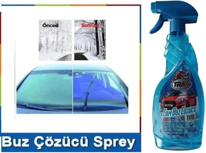 Araba Oto Cam Buz Çözücü Sprey (500ml). Kışın camlarda oluşan buz ve donmayı çözer. Kilit donmalarında da kullanılabilir. Camın çizilmesini engeller. Güvenli görüş sağlar.