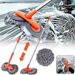 Araba yıkama fırçası, çift fırça başlığı, araba yıkama fırçası, 360° dönüş, 58 cm ila 115 cm arasında katlanabilir, 2’si 1 arada çizilmeye karşı teleskopik fırça, otomobil, karavan, kamyon,
