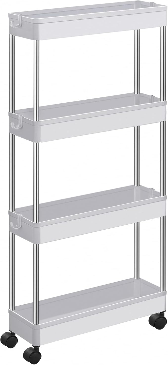 [Az yer için ideal] 12,5 x 40 x 88 cm (D x G x Y) boyutlarındaki bu ince tekerlekli araba, mutfak, çamaşır odası veya banyolardaki küçük nişlere mükemmel uyum sağlar ve fazla yer kaplamadan düzenlemeye yardımcı olur