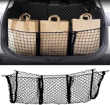 Kanca, SUV, araba, alışveriş yardımcısı için çok yönlü bagaj düzenleyici. Esnek tasarım çoğu araca uyar ve sürüş sırasında eşyaları güvende tutar