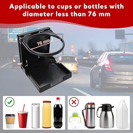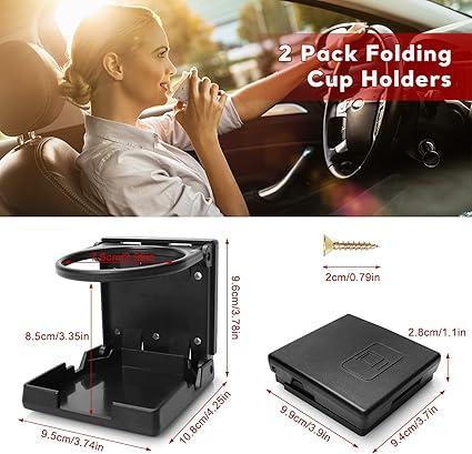 [Güzel ve kalın plastik malzeme] —— Katlanabilir bardak tutucu kalınlaştırılmış plastikten yapılmıştır, uzun ömürlü, su geçirmez, korozyona dayanıklı ve ağırdır. Tutucu şık ve güzeldir. Klasik siyah renk aracın çoğu iç kısmına entegre edilebilir. İdeal seçiminiz!