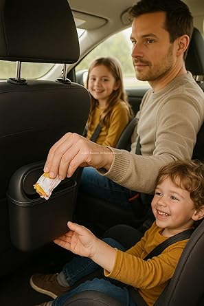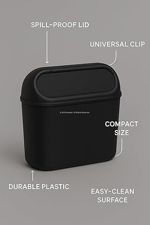 Araç İçi Çöp Kovası, Mini Otomobil Çöp Kutusu, Klipsli ve Kancalı Tasarım, Kol Dayama veya Koltuk Arkasına Takılabilir, Siyah Plastik Araba Çop Kabı, Dökülme Önleyici Kapaklı