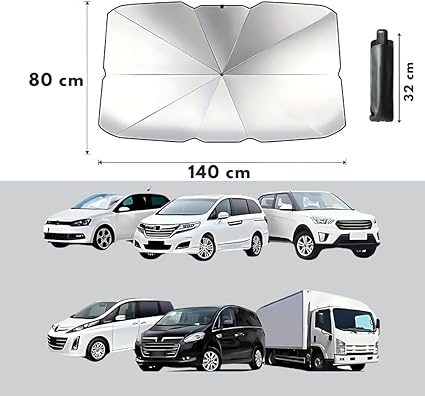 Araç İçi Ön Cam Güneşlik Şemsiyesi – 5 Katmanlı UV Blokaj Kaplamalı, Isı Yalıtımlı Ön Cam Güneşliği – Araba, Minivan, SUV ve Kamyonet İçin Güneşten Koruyucu Şemsiye Büyük Boy (140 cm x 80 cm)