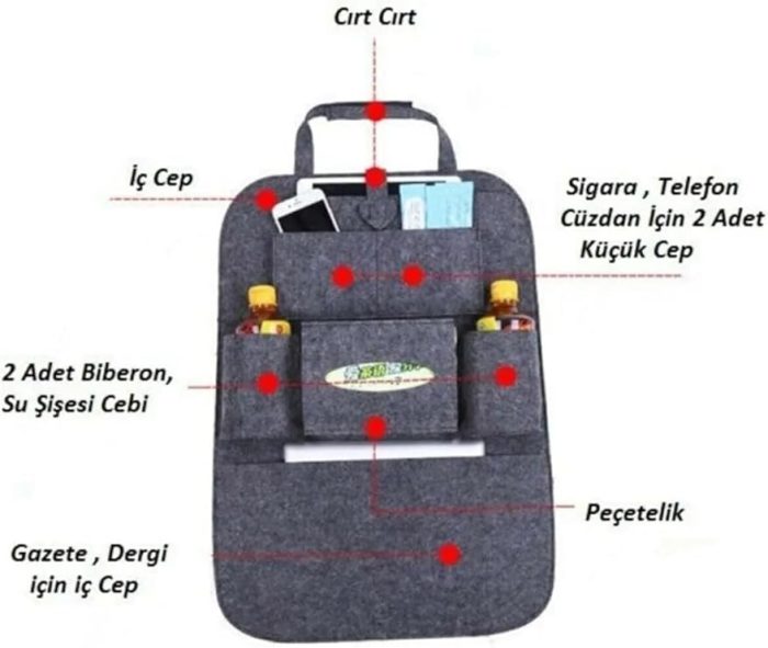 Araç Koltuk Arkası Eşya Düzenleyici Keçe Araba Içi Oto Çanta Organizer 2li (gri)
