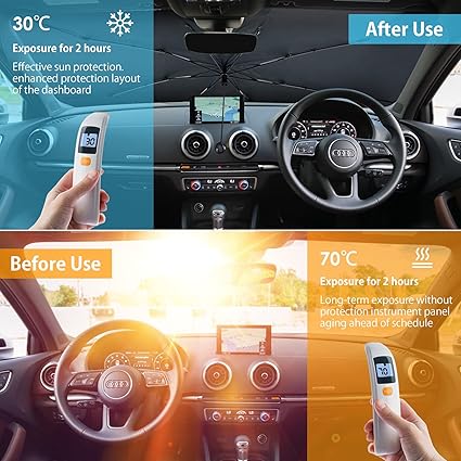 Mükemmel güneş koruması: Araç ön camı güneşliğimiz sadece aracınızın güneş ışınlarına karşı güvenilir koruma sağlamakla kalmaz. Ayrıca gösterge panelinde ve iç kaplamada solma ve çatlak oluşumunu önler. Böylece aracınızın kullanım ömrü etkili bir şekilde uzar.
