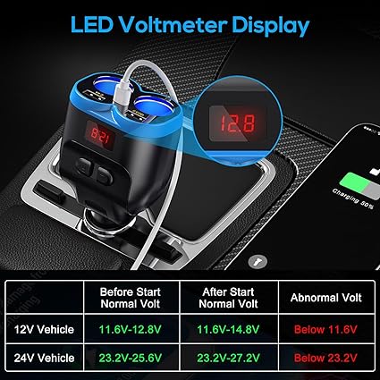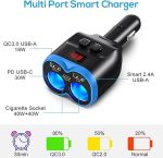 Araç Şarj Cihazı Çakmak Ayırıcı, 12V/24V Araç Cihazları için LED Voltmetreli Çift USB A ve PD USB Soket Ayırıcı