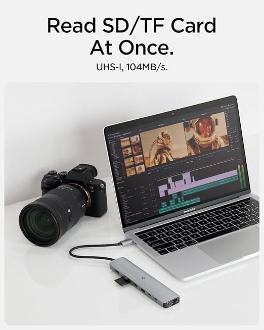 Çok Yönlü Bağlantı: USB hub yerleştirme istasyonumuzda tüm bağlantı ihtiyaçlarınızı karşılamak için bir USB-C 3.0 veri bağlantı noktası, iki USB-A 3.0 veri bağlantı noktası, bir Ethernet bağlantı noktası (1Gbps) ve bir 3,5 mm ses bağlantı noktası bulunur.