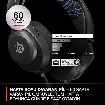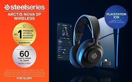 Arctis Nova 5P (PS) Wireless ve Bluetooth Kablosuz Oyuncu Kulaklığı, Siyah, Kablosuz