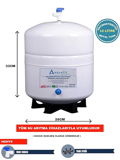 Geniş Uyumluluk: Tüm su arıtma cihazlarına uyumlu 12 Lt (3.2 galon) kapasite.