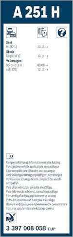 Arka Silecek Peugeot 308, Opel Astra L (2022-2024), Seat Arona (2017-2024), VW Scirocco (2008-2017), VW T-Cross – 250 mm A251H 3397008058