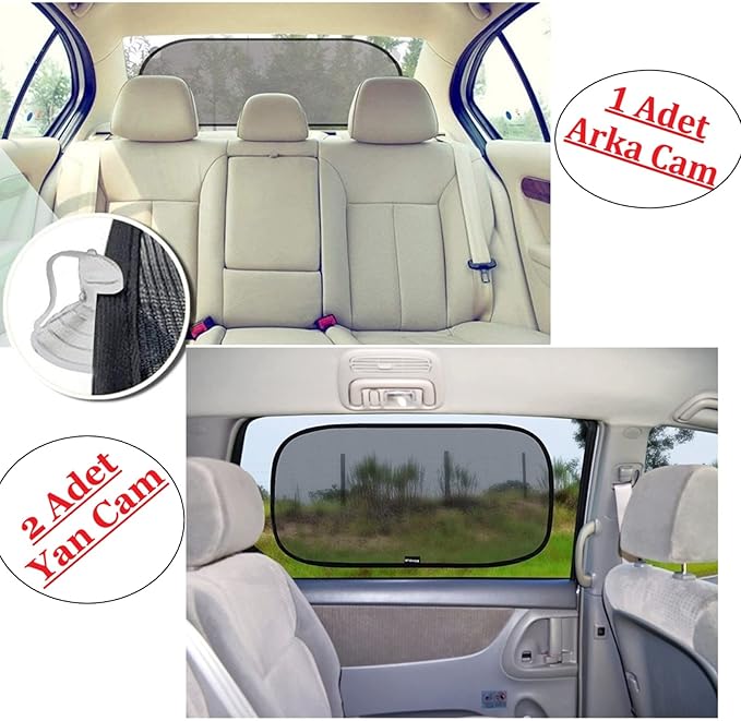 Arka Ve Yan Cam Araç Güneşlik Perde Seti 3 Parça Vantuzlu Oto Perde Güneşlik