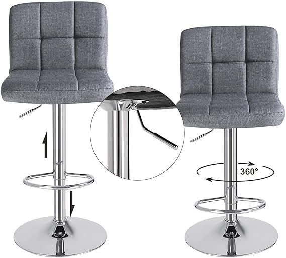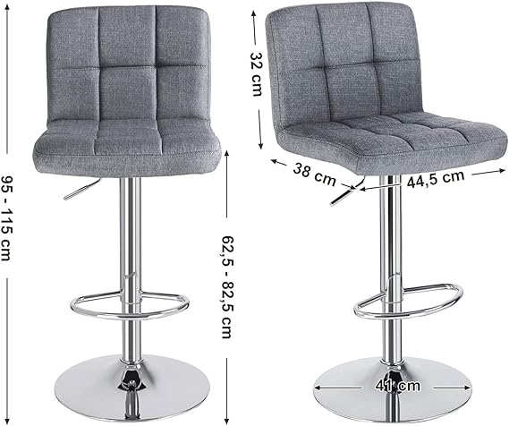 Arkalıklı Bar Taburesi Yüksekliği Ayarlanabilir Keten Duman Gri 44,5 x 38 x 115 cm