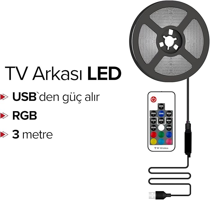 Özgürlüğünüzü ve Yaratıcılığınızı Keşfedin! Esnek tasarımı ve kesilebilir özelliği sayesinde Tv Arkası Ambiyans RGB Şerit LED Seti, ev dekorasyonunuzda sınırları kaldırır. Her köşede renkli bir atmosfer yaratmak için bu şerit LED setini tercih edin ve evinizin her anında kendinizi özel hissedin!