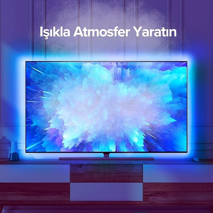 Renkli Ambiyans Işıkları: 16 milyon renk seçeneği ile evinizi renklendirin ve istediğiniz atmosferi yaratın. Kumandalı Kontrol: Uzaktan kumanda ile renkleri, parlaklığı ve modları kolayca ayarlayın.
