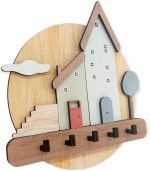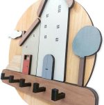 art & decoration Pastel Renkli Evler Ahşap Anahtarlık Hol Antre Askılık Duvar Dekor