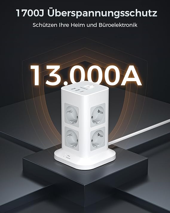 Çoklu soket aşırı gerilim koruması: Kule priz aşırı gerilim koruması, elektronik cihazlarınızı ani dalgalanmalardan ve voltaj artışlarından koruyabilir. Soket şeridi maks. 3600 W’a kadar güç sağlayın.