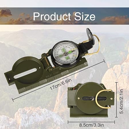 Askeri pusula, çok fonksiyonlu pusula, taşınabilir metal pusula, yürüyüş, kamp, tırmanma, ordu için, yeşil
