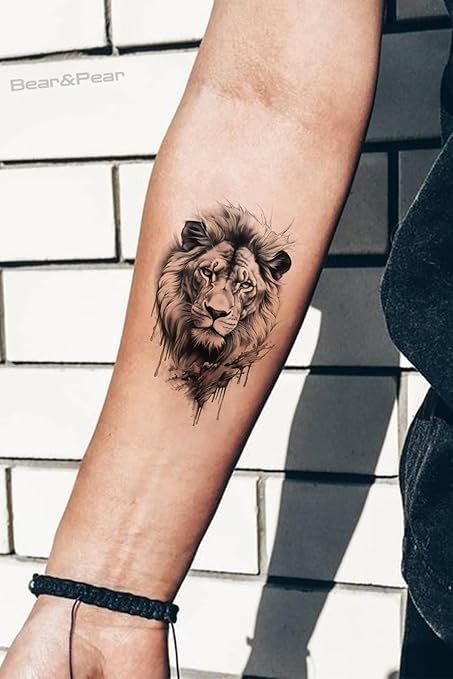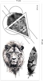Lion tattoo. Gender: Unisex. Total tattoo size: 9×19 cm. Durability: 3 to 7 days.