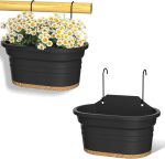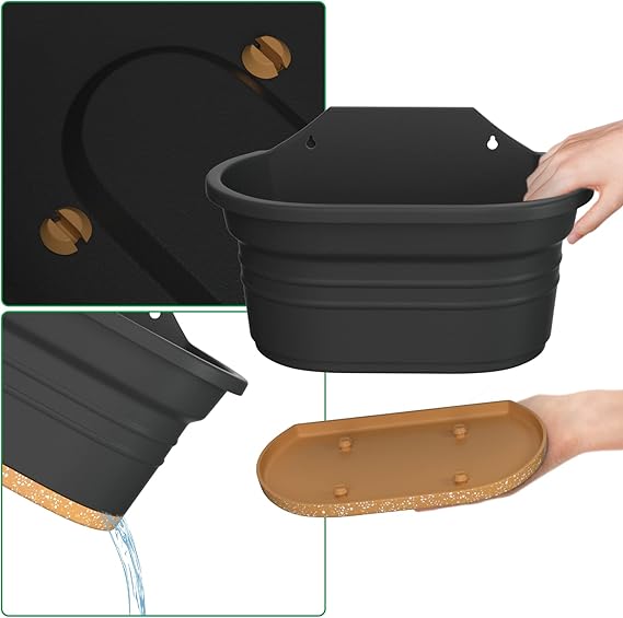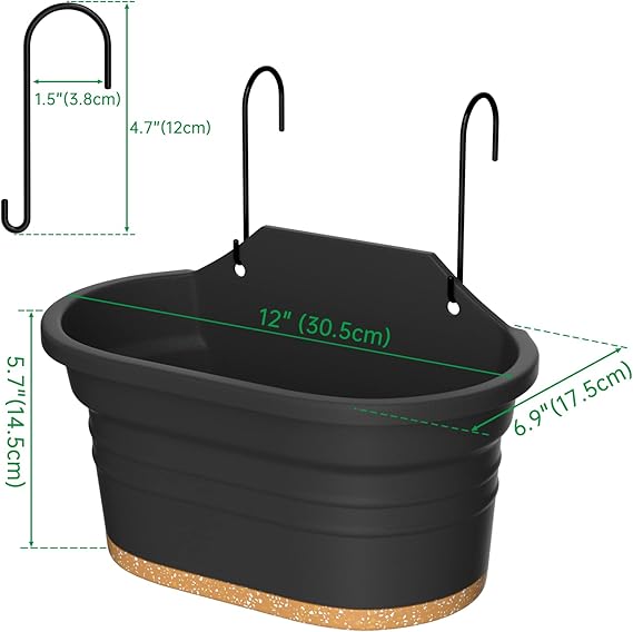 Asma Saksılar Asma Bitki Saksısı Drenaj Delikli Dikdörtgen Saksı Balkon Bahçe Çit Dekoru için Tabak 2 Kancalı (Koyu Gri, 2’li Set)