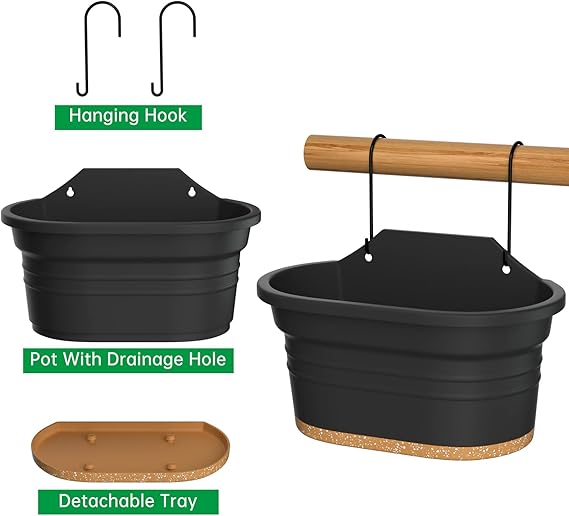 BOYUT – L30*W17*H14,5 cm, 2’li Set. Dikim derinliği 14cm’dir, asılı saksı meyve ağaçları ve bonsai hariç çoğu bitki için uygundur.