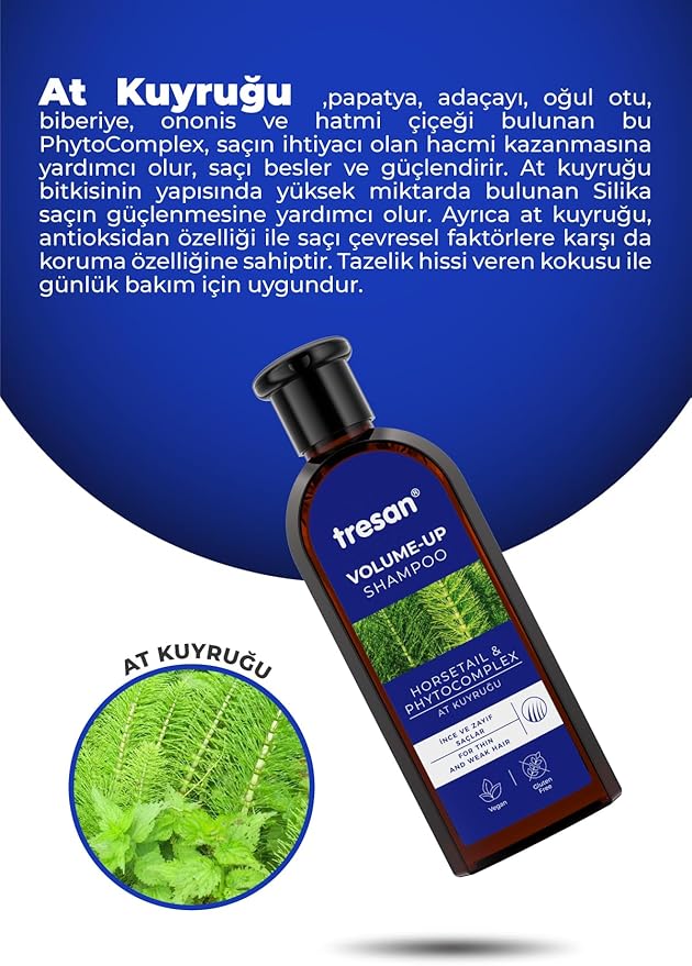 ✅Pantenol ile zenginleştirilmiş olan Tresan At Kuyruğu Şampuanı, zengin bitki özlerinden oluşan bir PhytoComplex içerir.
