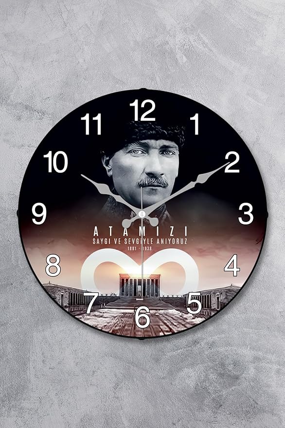 Atatürk Duvar Saati Akar Saniye Sessiz Mekanizma 36 cm