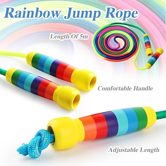 5 m uzunluğunda atlama ipi: Bu gökkuşağı atlama ipi uzun çocuk uzunluğundadır, 5 metre uzunluğundadır, grup atlamaları için uygundur, aynı anda 2 – 4 kişi tarafından kullanılabilir ve uzunluğu ayarlanabilir, böylece çocuklar farklı türde egzersiz deneyimlerinin tadını çıkarabilir.
