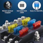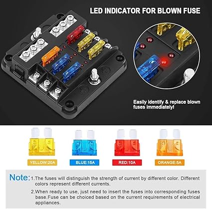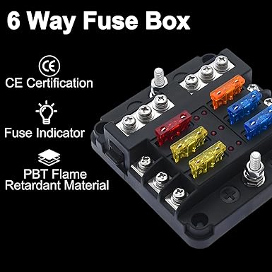 Kolay kullanım: Önceden şekillendirilmiş 4 delik ile emniyete alınabilir; deniz paslanmaz çelik giriş ve çıkış vidaları yüksek korozyon direncine sahiptir. Teslimat: 1 x 6 bölmeli sigorta tutucu, 10 x düz sigorta, 4 x vida, 2 x etiket çıkartması.