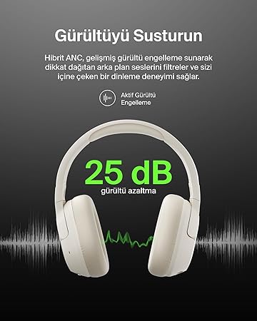 TÜM GÜN ÇALIŞMA VE YÜKSEK KONUŞMA KALİTESİ: Pil ömrü 60 saat olduğundan, kulaklığı şarj ettikten sonra tüm gün kullanabilirsiniz. Teknik olarak olgunlaşmış hibrit Active Noise Cancellation ile ileri geri besleme ve geri bildirim mikrofonları birleştirilir, böylece harici gürültü 25 dB’ye kadar azaltılır.