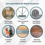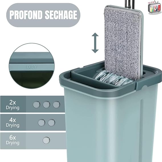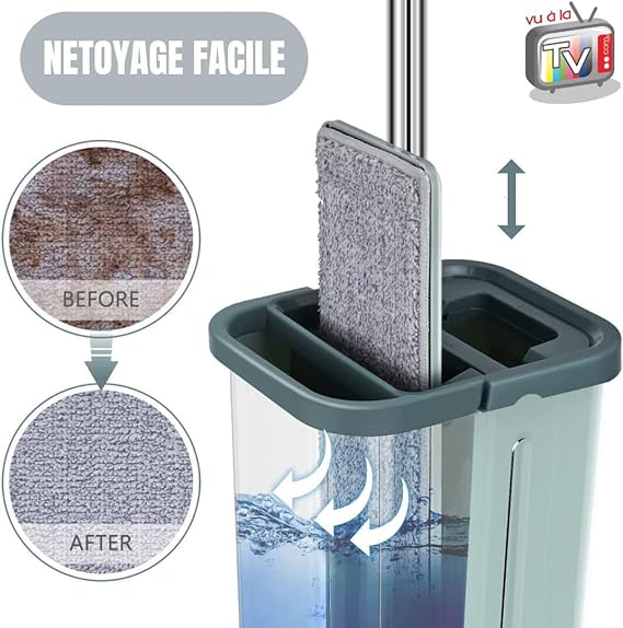 Çift bölmeli kova: Bu paspas entegre sıkma aparatlı bir kova ile donatılmıştır, ellerinizi kirletmeden yıkamak ve temizlemek için idealdir. İster iç ister dış mekan olsun, evde bir zorunluluktur.