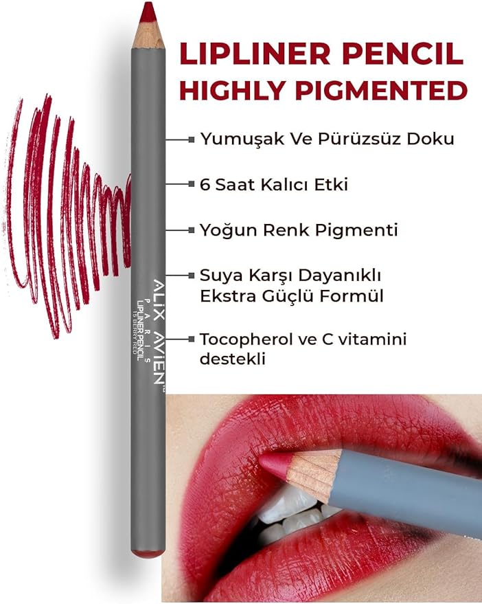 AVIEN Uzun Süre Kalıcı Dağılma Yapmayan Nemlendirici Dudak Kalemi – Lipliner Pencil 15 Berry Red