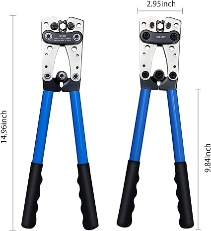 Akü kıskacı sıkma pensesi 6 mm2/10 mm216 mm2/25 mm2/35 mm2/50 mm² (8, 6, 4, 2, 1, 1/0 AWG 6 şekle benzer) başları tutmak için yaylı emniyet pimi ile dönen kafalara sahiptir