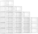 [Teslimat kapsamı] Ön kapılı, istiflenebilir ve katlanabilir, havalandırma delikli 18 şeffaf plastik kutu; Kolayca katlanabilen ve kullanılmadığında yer kaplamayan bu kutular ile ayakkabı yığınlarına veda edin