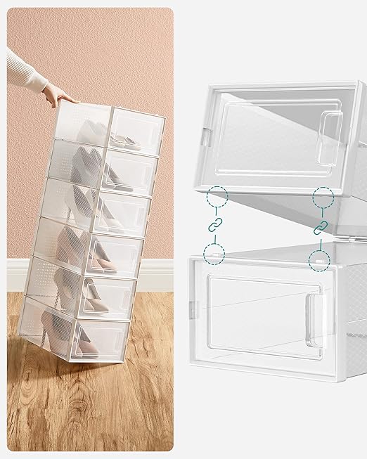 [Hemen hazır] Tek tek parçaları bir araya getirmeniz yeterli; iç boyutları 31,2 x 22,5 x 13,5 cm olan istifleme kutuları hazır, uygun 44 bedene kadar; Spor ayakkabılar, topuklu ayakkabılar ve düz ayakkabılar nihayet kendi yerlerine kavuştu