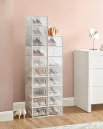 ayakkabı kutuları, 18 şeffaf ayakkabı kutusu seti, katlanabilir ve istiflenebilir, 44 bedene kadar, şeffaf beyaz LSP18SWT