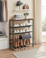 SAĞLAM VE GÜZEL: Ahşap yonga ve çelikten yapılmış bu raf sağlam ve sağlam bir yapıya sahiptir. Ayakkabı rafı sadece 4 siyah ızgara rafına değil, aynı zamanda vintage kahverengi bir üst rafa sahiptir