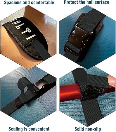 Birinci sınıf malzeme. Paddle Board taşıma kayışı, daha iyi bir fermuar için yüksek mukavemetli güvenli kilit tokası ile yüksek kaliteli naylon malzemelerden oluşur. Ayrıca omuz yastığı maksimum konfor için yumuşak ve dayanıklı neoprenden oluşur, tahtanızla yürürken veya giyerken basıncı ve gerilimi azaltır.