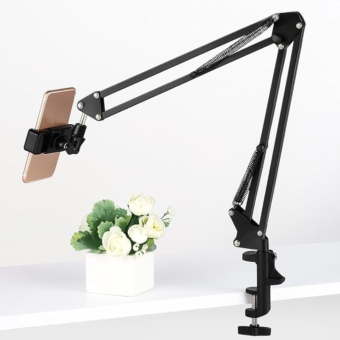 Ayarlanabilir Masaüstü Üst Çekim Telefon Standı – Süspansiyon Kollu Tripod Kol – Canlı Yayın, Yemek Çekimi, Üstten Çekim, YouTuber & Yayıncı İçin – Bluetooth Kumandalı